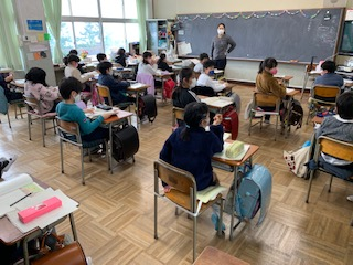 4年生は道徳です。資料からどんなことを読み取って自分はどう思うかを発表しています。