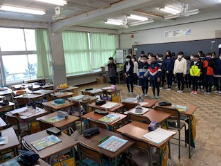 5年生は「6年生を送る会」のリハーサルです。カメラに収めて自分たちの様子を見ながら確認します。