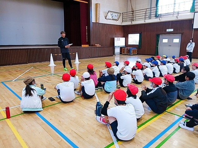 後半はサッカー教室です。ボール慣れをし、短い時間でのゲームを行いました。サッカーチームに入っている子だけでなく、皆がボールを追いかけ楽しむ様子が見られました。市川選手のロングシュートに大いに盛り上がりました。