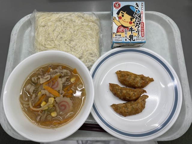 【献立】牛乳 みそラーメン (ホットラーメン) 揚げぎょうざ