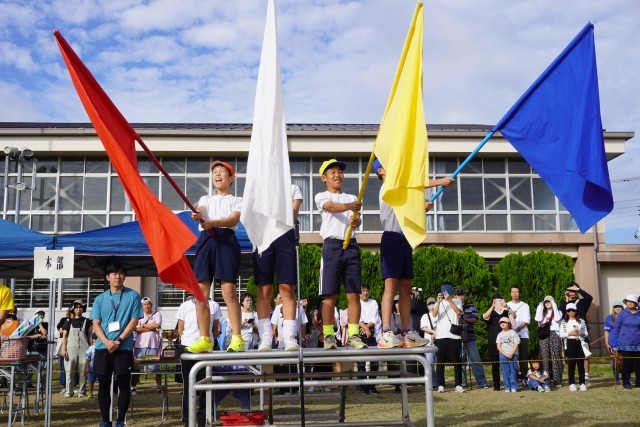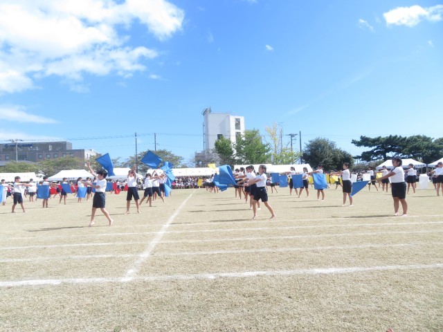 圧巻だったのは、各ブロックで取り組んだ表現です。1.2年生のかわいらしいダンス、3.4年生のメリハリのきいたかっこいいダンス。そして最後の5,6年生の表現は、一人一人の技から仲間と協力する技に進み、そのあとはフラッグを使った演技で、全員で心を一つにして取り組む姿には思わず目頭が熱くなりました。
