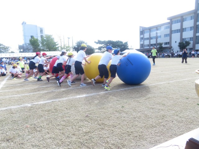 子どもたちはどの競技や演技でも、最高の姿を見せてくれました。一人一人が自分の力を精一杯出して臨んだ徒競走、ふれあい班の仲間で行った、大玉ころがし、だるま運び、玉入れでは、高学年が低学年を思いやる友愛の姿もたくさん見られました。