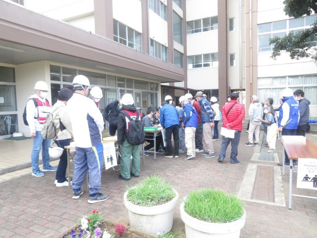 下府中小学校は広域避難所となっているため、訓練開始とともに、一時避難場所に集まった各地域の方が、二次避難として下府中小学校に集まってこられました。