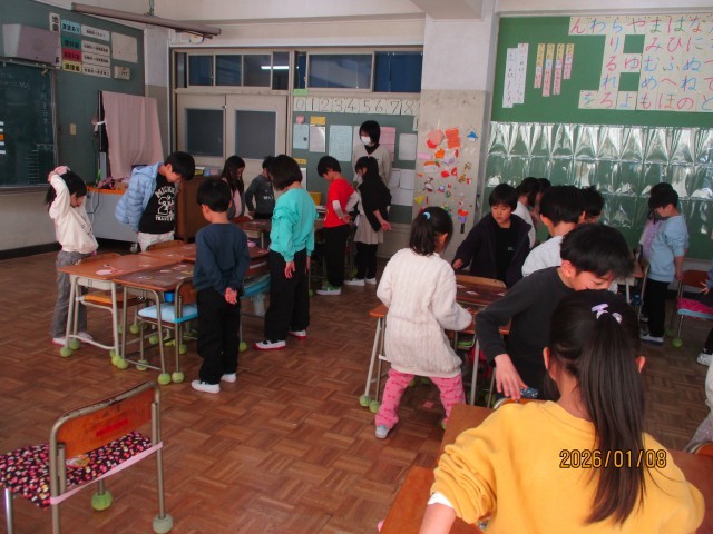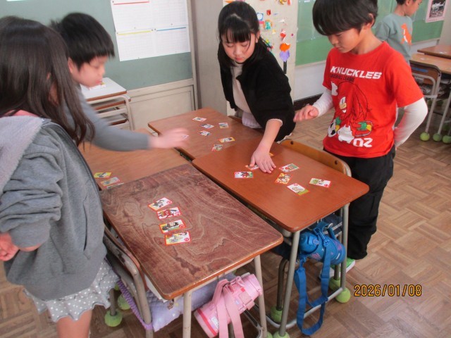 1年生の教室を回っていると、楽しそうな声が聞こえてきました。カルタ遊びです。