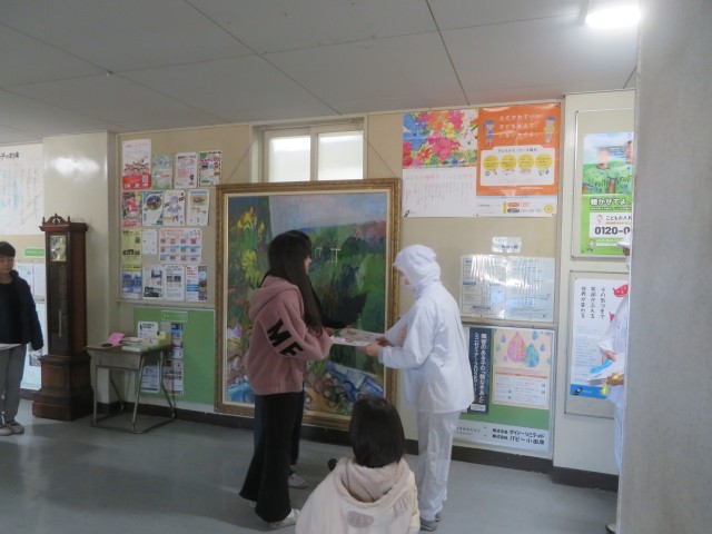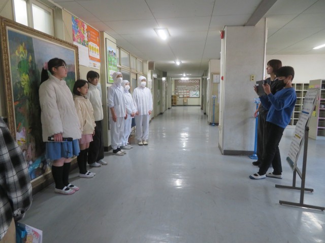 給食委員会の代表の人が司会をし、クラスの代表がプレゼントを渡すときには一言ずつメッセージを添えました。「いつもおいしい給食を作ってくれてありがとうございます。」「卒業まであと少しですが、このあともおいしい給食をお願いします。」などと、それぞれが添えたメッセージを聞きながら手紙を受け取る調理員さんたちには、うれしそうな笑顔が浮かびました。