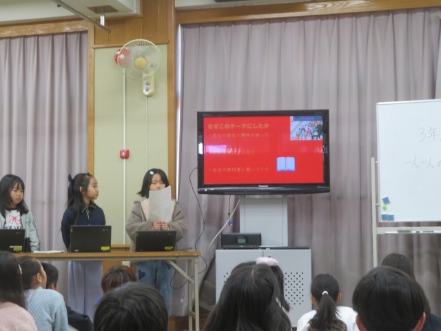 先日3年生の「小田原研究発表会」がありました。総合学習で学んだ小田原市の良いところをそれぞれが調べたものを発表しました。