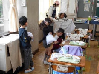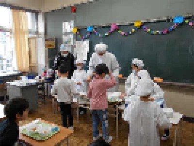 給食当番の子にとっては、これがはじめての当番。