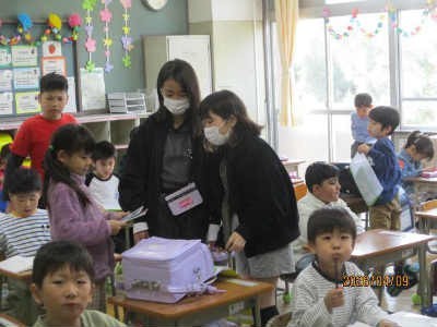 毎朝、6年生が数名ずつ1年生のお手伝いに来てくれています。