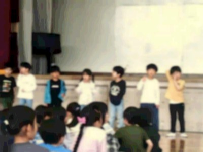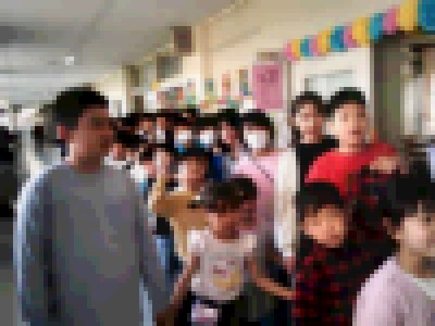 全校児童の前に立ち、6年生から歓迎の言葉、2年生から歌のプレゼントがありました。