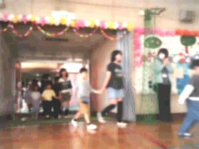 6年生と手をつないで、体育館に入場すると、在校生から温かな拍手で迎えられました。