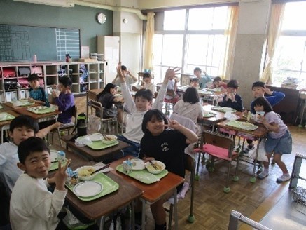 給食の時間も子どもたちの頑張りがたくさん見られました。