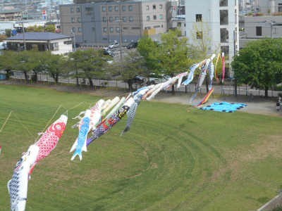 最後は、屋上に上がって上からこいのぼりなどを見学。