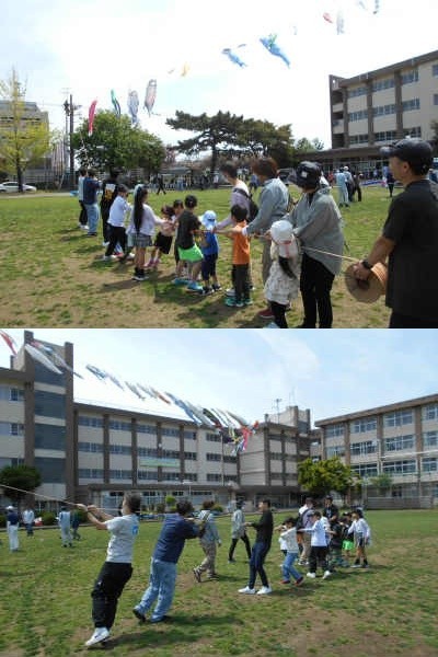 今年は本校の95周年ということもあり、こいのぼりの中央には「95」の数字も記されています。