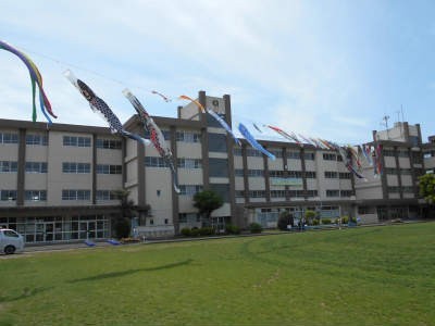 こいのぼりは、5月中旬まで学校の前で元気に泳いでいるそうです。