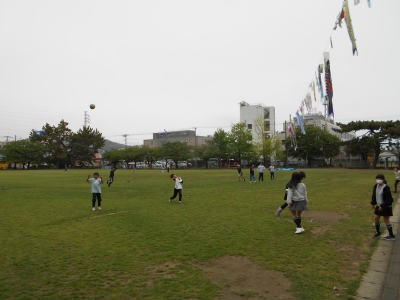 …写真・画像の一部は、芝生の上で遊んでいる「解放された」6年生の様子です。(笑)