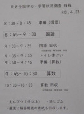 この調査は全国の6年生が同じ日に行うもので、令和8年度は国語と算数の2教科と質問紙調査が実施されました。