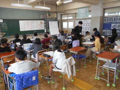 5年生の教室に入ると、ちょうど「自分の名前で自己紹介」の発表が終わるところでした。