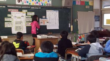 5年生まであと約1ヶ月となりました。体も心も大きく成長していく4年生では、保健の学習で自分の体のことを考えました。これから、体と心にどのような変化がおき、よりよく育つためにはどのようなことが大切なのか…養護教諭の小原先生と栄養教諭の飯島先生をお招きしてお話をしていただきました。小原先生からは、思春期の体や心の変化は少し不安だけれども、みんなで助け合ったり、協力したりしていくことが大切であることを教えていただきました。飯島先生からは、すくすく育つためのポイントは多くの種類の食品をバランスよく食べること、適度な運動をすること、しっかり睡眠をとることを教えていただきました。2分の1成人式を迎える4年生のみなさん。これから、自分のことを大切にして、体も心もより大きく成長していきましょう。