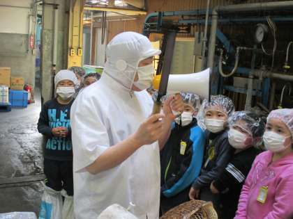 3年生は、2月27日にかまぼこ工場の見学に行きました。