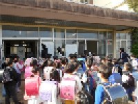 1年生の教室をのぞくと、生活科の学習でICT(学習用端末)を使用していました。運動場を散策して自分で見つけた秋を写真に撮り、それを説明するための文字打ちをしていました。