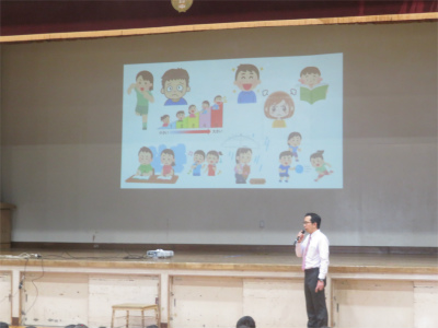 2月20日(火)に朝会がありました。今回は教頭先生のお話を聞きました。毎年、本校児童に実施しているアンケート(いじめに対する意識調査)結果と「ピンクシャツデー」の由来をもとに、いじめや一人ひとりの個性について考えました。