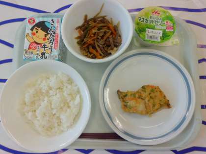 ごはん 牛乳 あじのみそマヨ焼き こんにゃくのきんぴら ゼリー