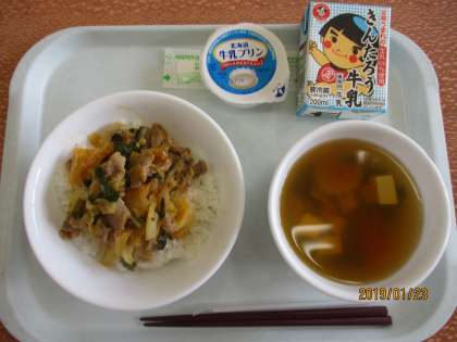豚キムチどん 牛乳 すまし汁 牛乳プリン