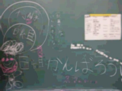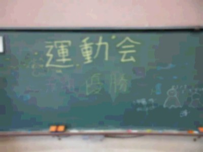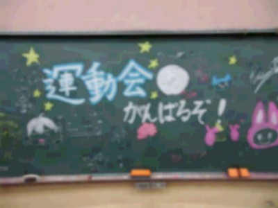 放課後、いくつかの教室では黒板にチョークで絵や言葉が描かれ、運動会への思いが表現されていました。