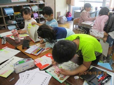 本作りでは、調べたことを文章にまとめることの難しさや、本に出てくる知らない言葉の数々に苦戦する姿等、いろいろな壁にぶつかりながらも、子どもたちが粘り強く自分だけの「本」と向き合う姿に感心しました。