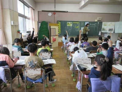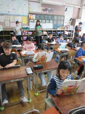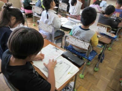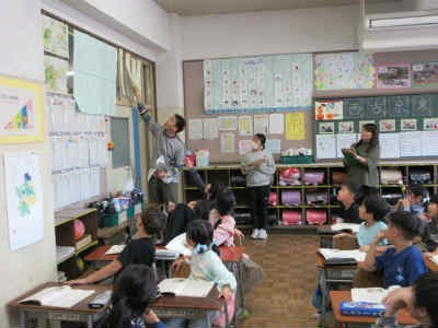 この授業は、校内研究の低学年ブロック研究としても位置づけられており、主に低学年に携わる職員が入れ替わり立ち代わり参観しました。