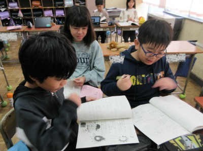 配付されたしおりを手にした子どもたちは、真剣な表情で一つ一つのページを丁寧に読んでいました。
