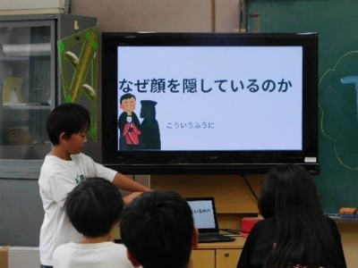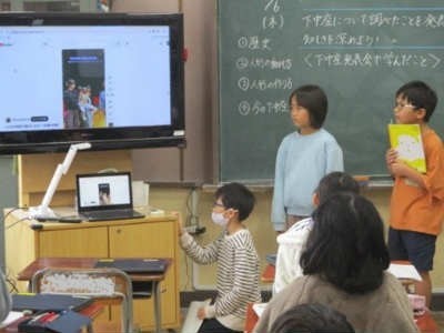 「下中座はなぜ始まったのか」や「人形の動かし方」など、自分たちが疑問に思ったことについて調べた結果を伝え合い、解決することができました。