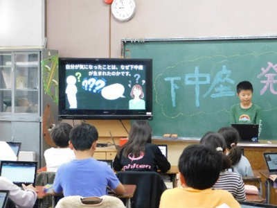 11月6日(木)に、社会「地域で受けつがれてきたもの」の学習で、下中座について調べてきたことをグループごとに発表しました。