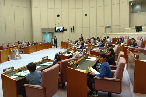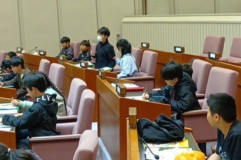 至れり尽くせりの対応に子どもたちの緊張はすっかりほぐれ、笑顔で議場を後にしました。
