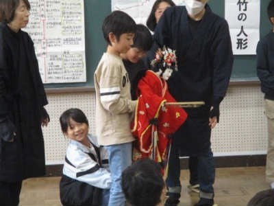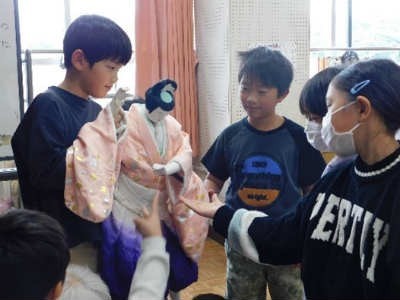 人形を動かす仕掛けを学び、恥ずかしがる仕草や挨拶する様子など、自分がさせたいポーズを器用に表現している子もたくさんいました。