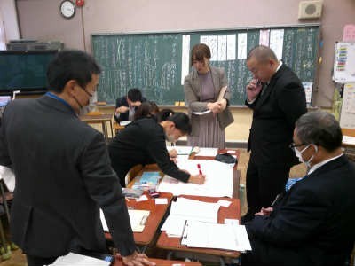 来校された指導主事は本校の研究に関わって3年目ですので、継続的な視点で、例えば、教師の姿勢や変化等についても的確な指摘や価値づけがあるなど、協議は充実したものとなりました。