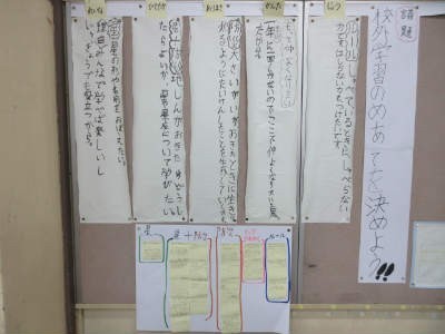 これまで運動会のスローガン決めなどで、納得がいくまで話し合う経験を積んできた子どもたちには、自信や意欲が育ってきていますが、今回の授業でも、自分の考えを出し合い、友達と共有しながら深めていく姿が見られました。