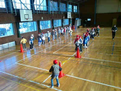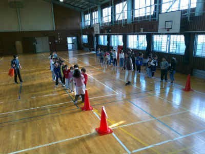 そのため、6時間目には1・2年生合同で体育の授業が設定され、体育館でメディシンボールを楽しみました。