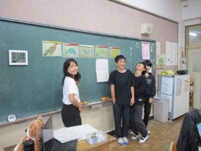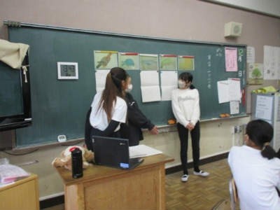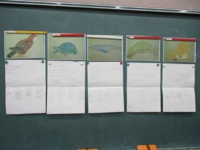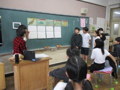 そして、今回の写真は、「もし一日生まれ変わるならどの動物になりたいか(また、なりたくないか)。」を考え、発表した場面です。