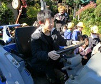 また、農機具を紹介していただいた後は、トラクターの運転席に乗せてもらいました。