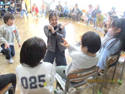 みんなロジャーを使っている児童の位置を確認し、話す速度、口を大きく開けて話すことなど、みんなが楽しめるように工夫していました。