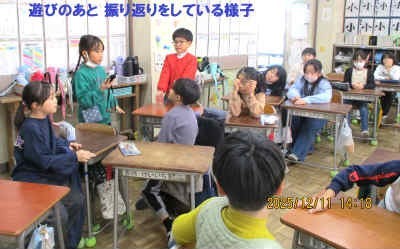 遊びのあと、子どもたちと振り返りの時間をとりました。