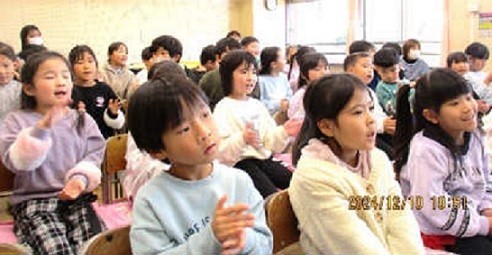 子どもたちはリズムに乗って体をゆらしながら聞いたり、「ジングルベル」を一緒に歌ったりして楽しいひとときを過ごしました。