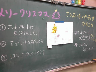 わかば級では、「メリークリスマス さつまいもパーティをひらこう」という学習・活動が行われました。