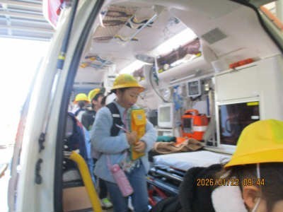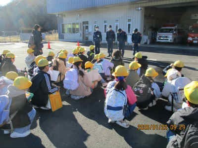 バスを降り、消防署に到着した3年生は、「消防署の人たちはどんな仕事をしているのだろう?」というめあてをもって見学をスタートしました。
