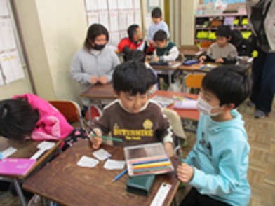 5年生はメッセージカードの書き方や説明の仕方など、いろいろと準備をしてきました。