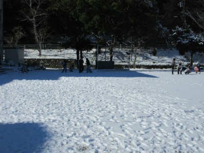 臨時で雪遊びを行っている学年等も多く、雪合戦が始まると、