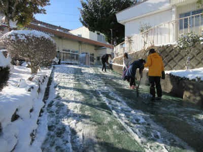 朝早くから、学校入口や周辺の雪かき、通学路の確保に尽力してくれた職員の姿がありました。