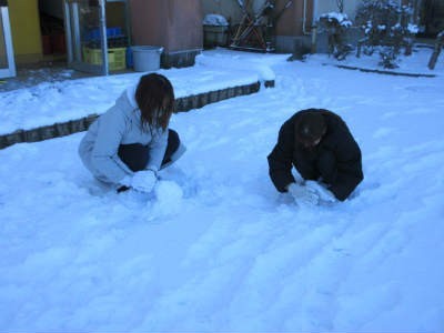 「こっちの雪、丸めやすいよ!」