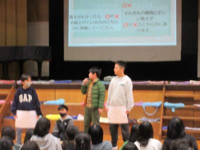 まずは○×クイズで、6年生の6年間の思い出を楽しく振り返りました。